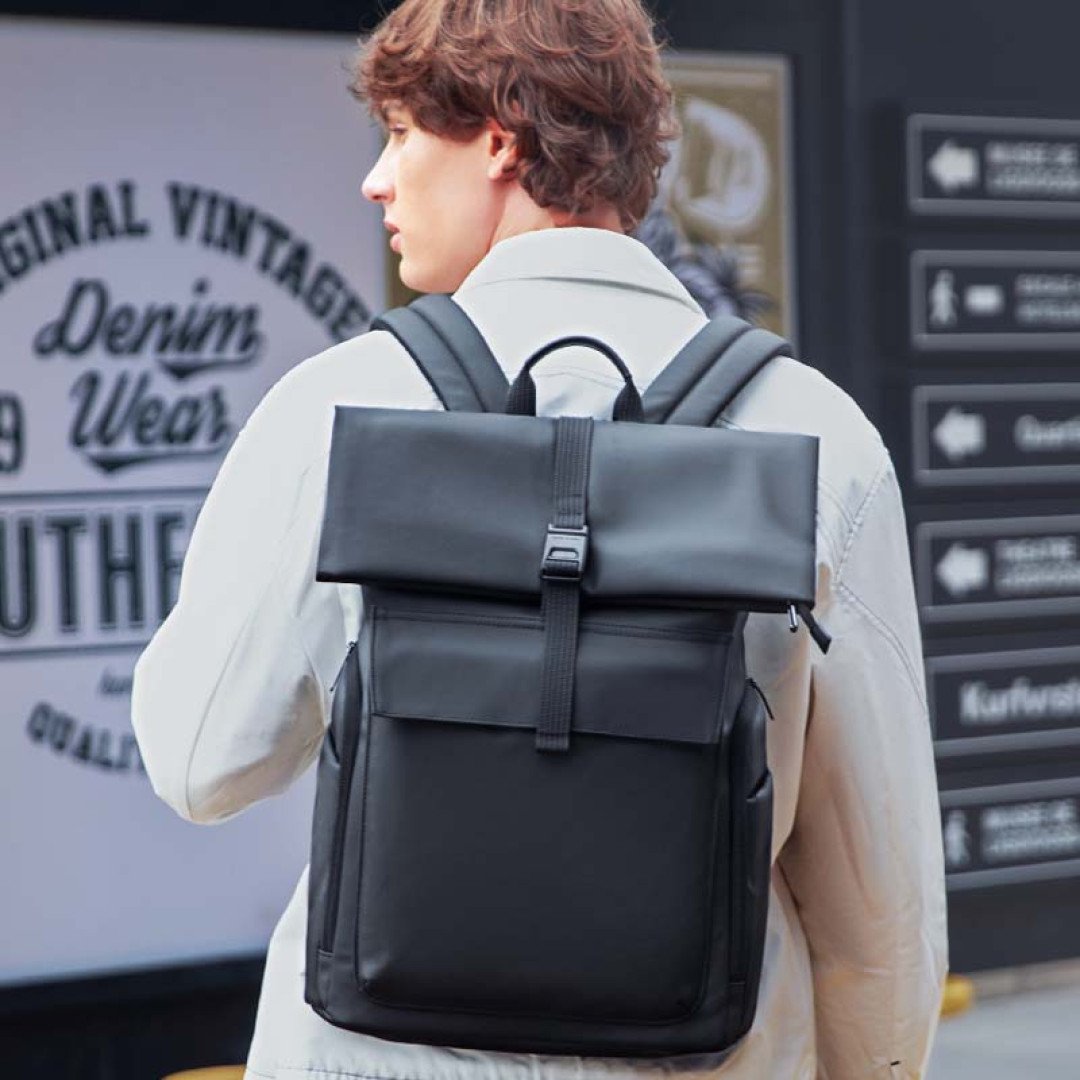 The backpack can fit a laptop up to 15.6 inches and a large tablet. Thanks to a thoughtfully designed system of internal and external compartments and pockets, you can easily organize your belongings and keep quick access to essentials (small items within reach and hidden compartments for valuables). This stylish backpack is made of durable, waterproof vinyl and features reliable Japanese YKK zippers. Soft, padded shoulder straps with a breathable membrane and a chest strap with a buckle ensure comfort even when the backpack is fully loaded.
