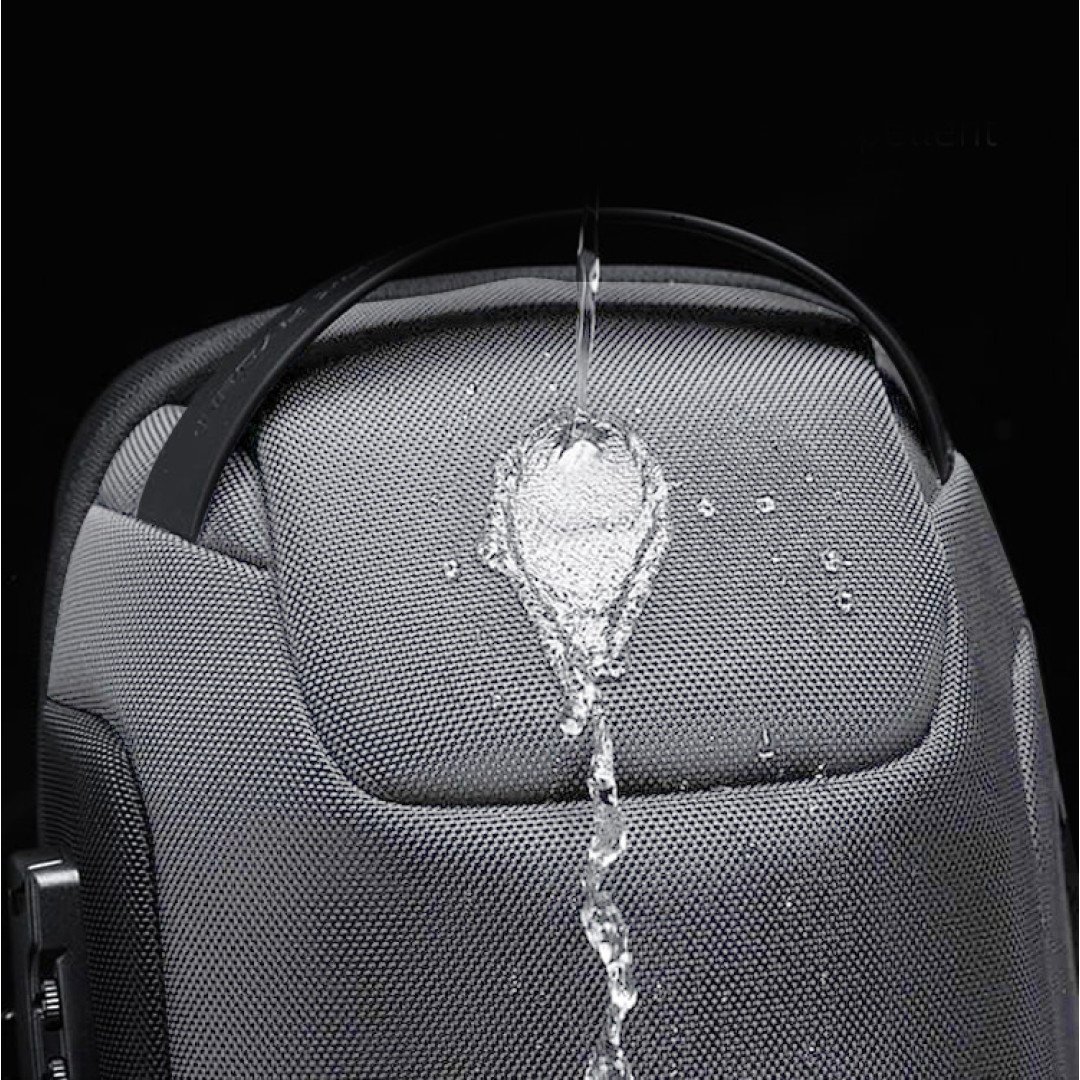 The gray shoulder bag is compact in size yet surprisingly spacious. Inside, there are soft pockets designed for a tablet up to 10 inches and a smartphone. All your devices are safe in the main compartment, secured with a TSA combination lock. Additionally, the backpack has an external hidden pocket on the back panel, equipped with a breathable membrane.